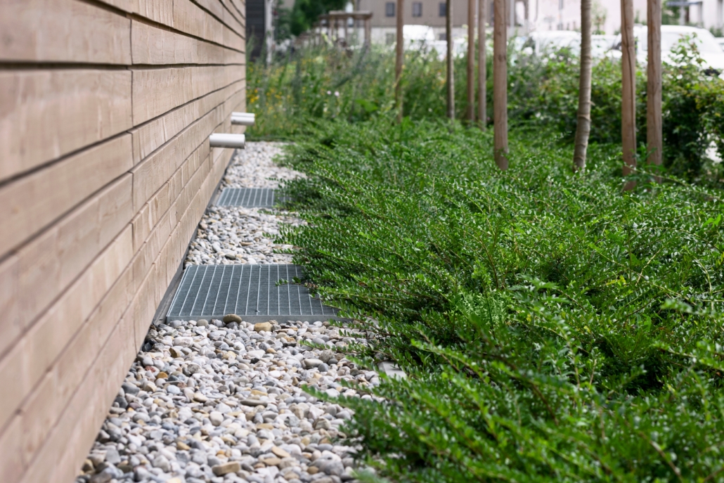 During installation, stone layers rest on compacted base material that supports controlled slope. Each layer contributes to drainage performance. Proper grading ensures water moves toward designated exit points rather than collecting near the home.